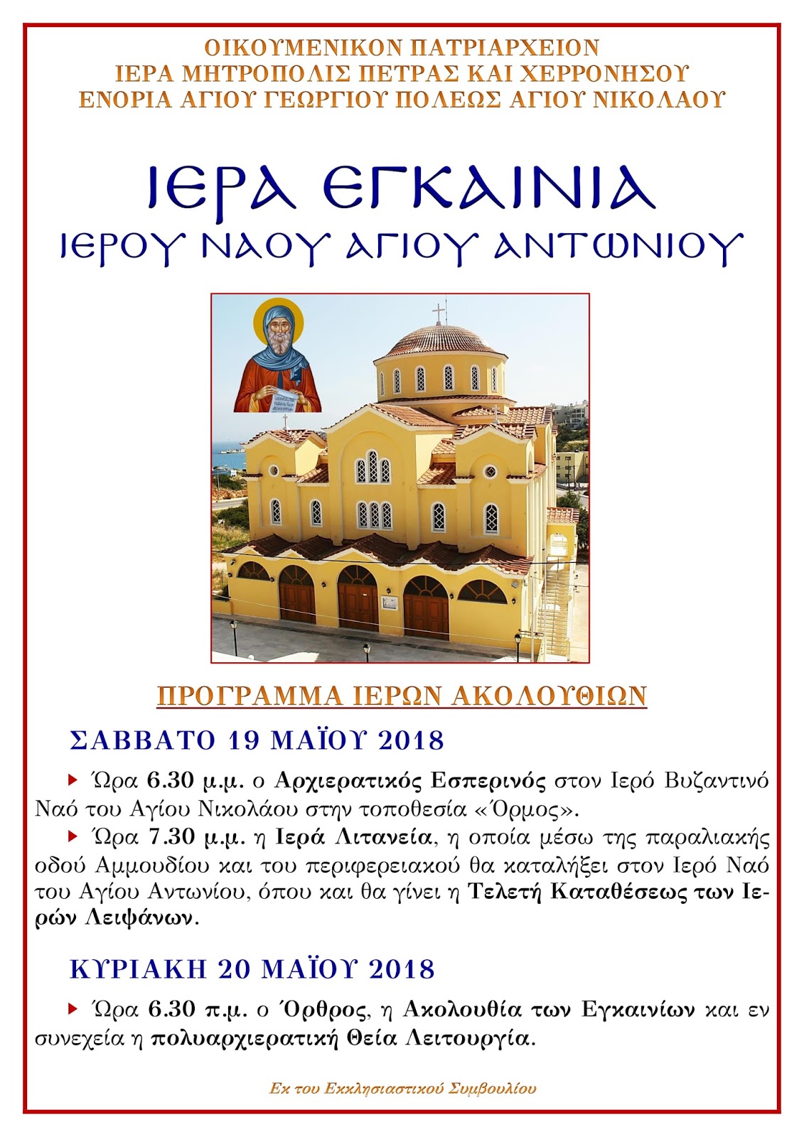 Ἱερά Ἐγκαίνια τοῦ Ἱεροῦ Ναοῦ τοῦ Ἁγίου Ἀντωνίου, τῆς Ἐνορίας Ἁγίου Γεωργίου,